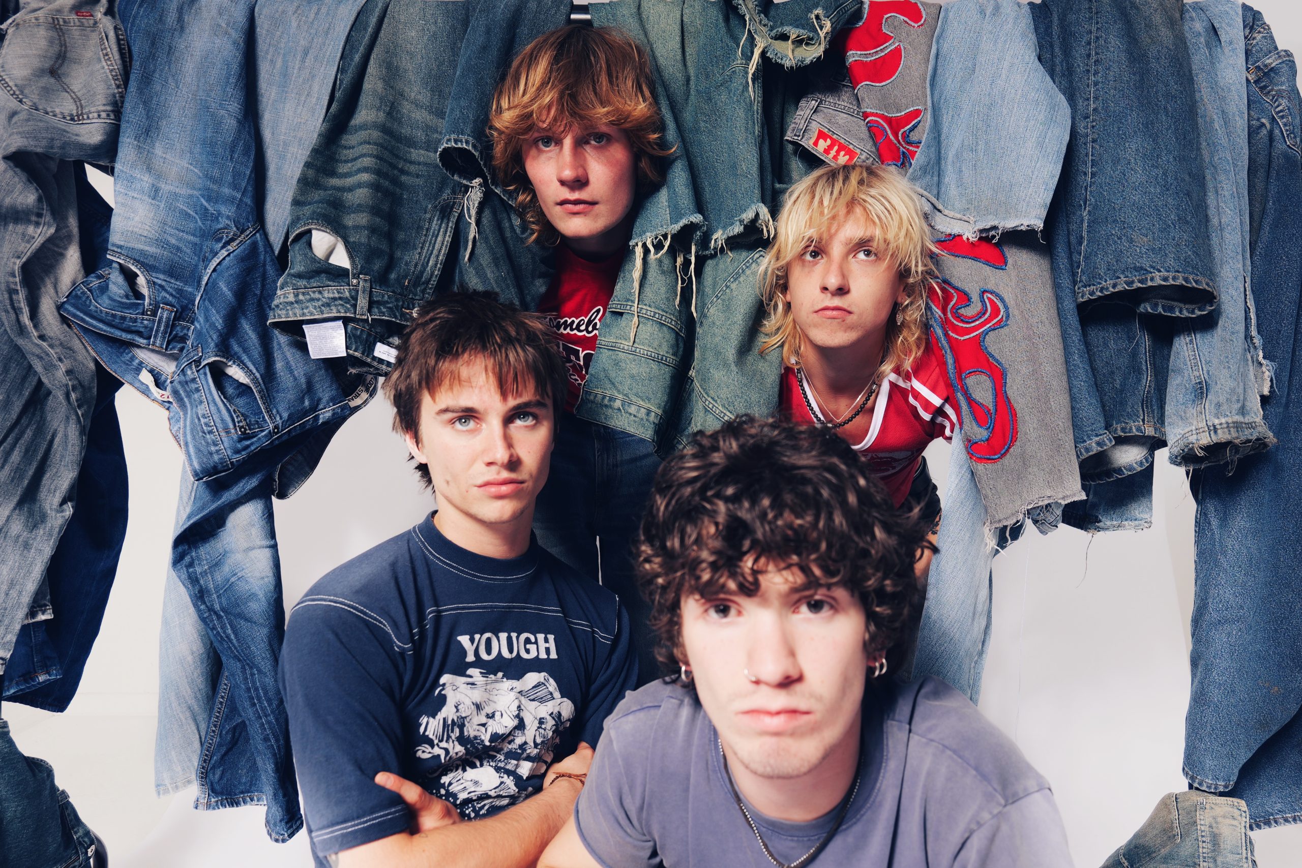 Die Twice are redefining band culture for a new generation disillusioned with the modern landscape of social media soundtracks and lack of shared experiences. Band members Olly Bayton, Billy Twamley, Finn ‘Blue’ Lloyd and Jake ‘Fig’ Coles are using their raw and romantic absurdity to lead the charge of a new wave of UK Rock and Roll.