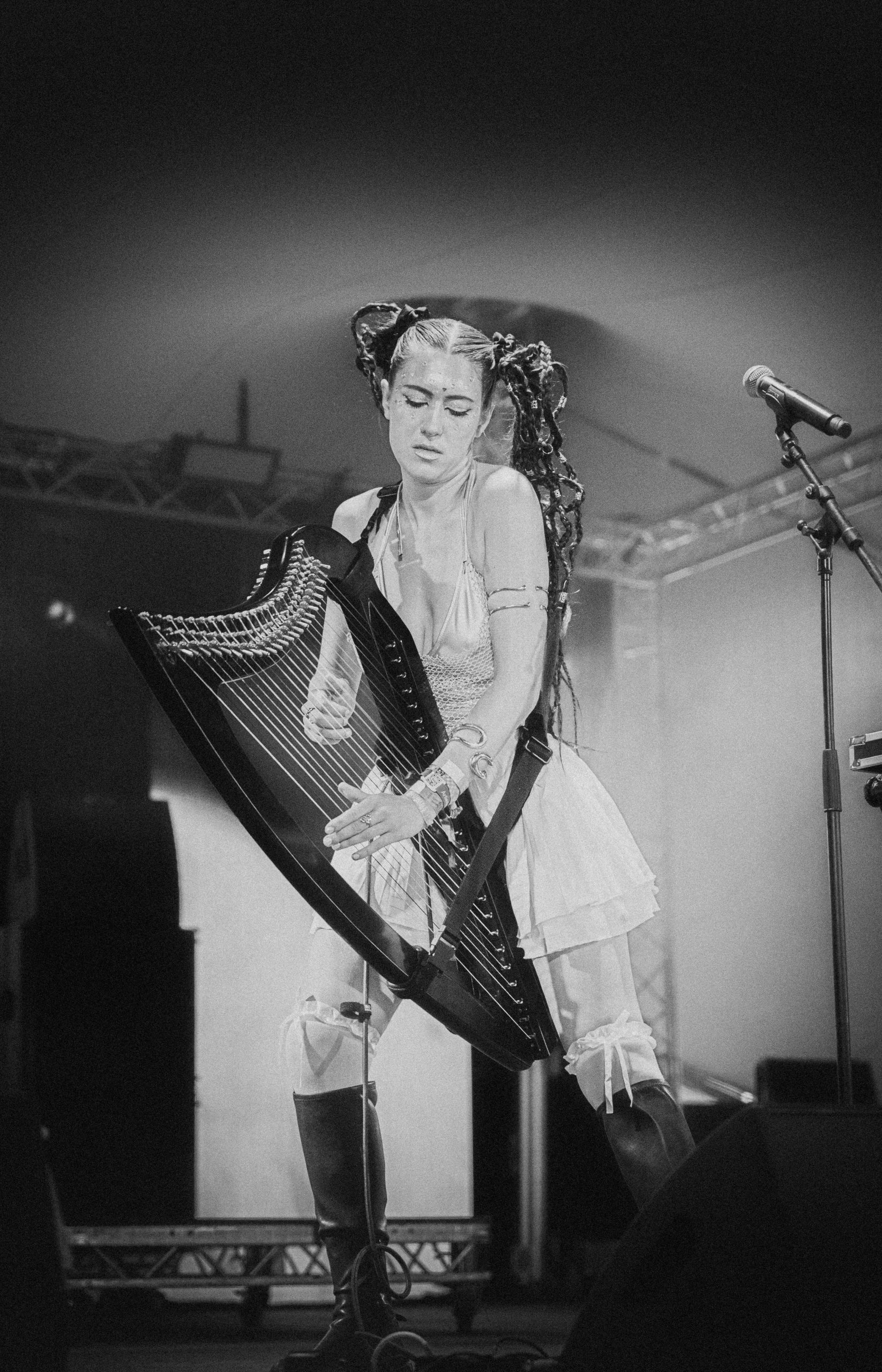 ROZSA is a genre-blurring artist weaving hypnotic hip-hop, neo-soul, and jazz with a signature twist: live electric harp. Her lyrics dance between desire, femininity, and personal transformation, while her sound remains dark, ethereal, and defiantly original.